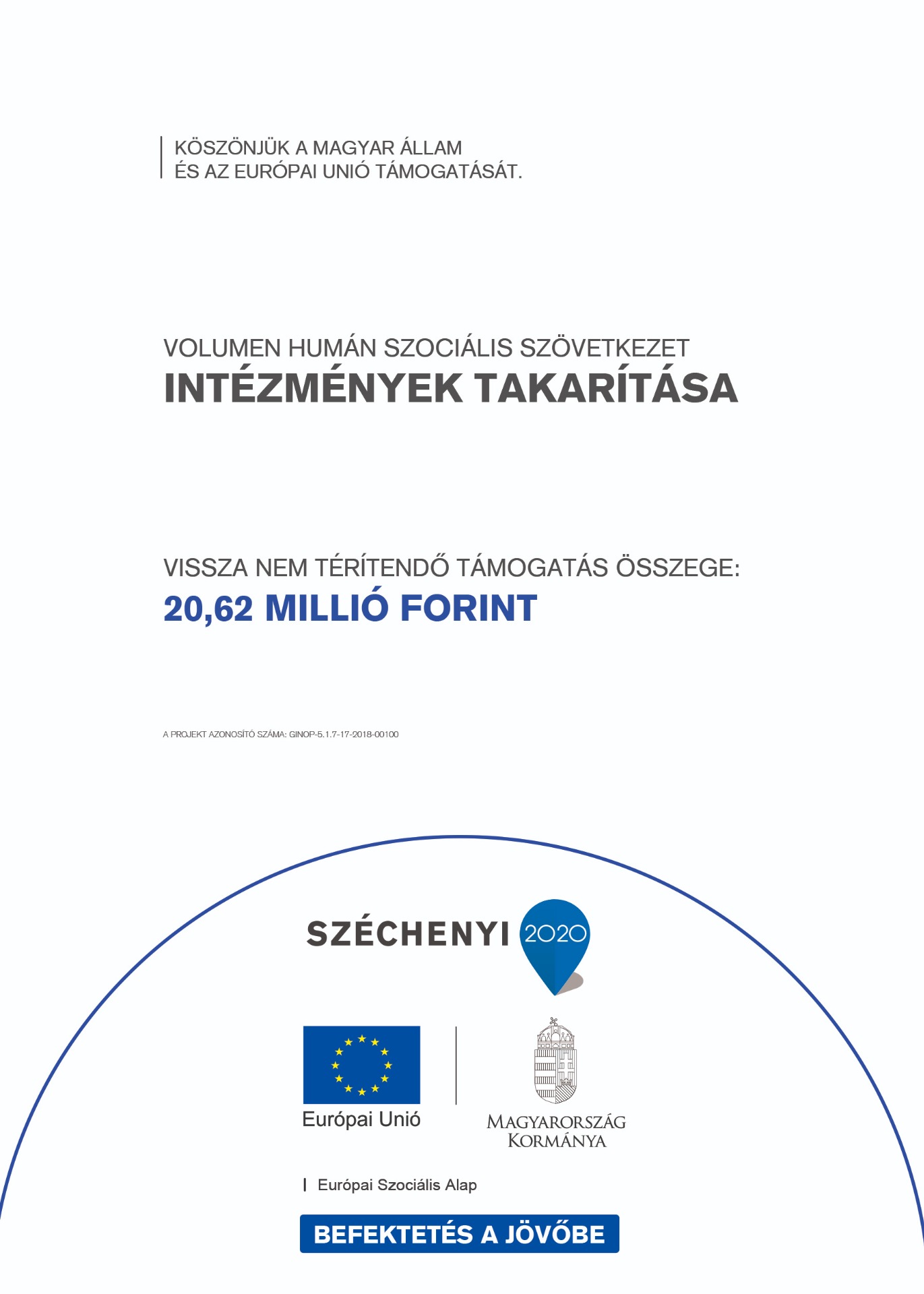 Jelen pályázatban definiált társadalmi probléma egy részének megoldására szeretnénk piacképes takarítói szolgáltatásokat folytató szervezet működtetésén keresztül 3 fő álláskereső foglalkoztatásával, képzésével választ adni. Tervezett célközönségünk - a korábbi működésünkre is jellemző – kisebb, nagyobb vállalkozások magánszemélyek. Magánház-, iroda-, apartman-, intézmények takarítását, épületen kívüli takarítását, szőnyeg-, kárpittisztítását végezzük. Új vevőknek és a korábban kiépített kapcsolatrendszeren belül kívánjuk értékesíteni szolgáltatásainkat. Célunk tartós munkanélküli vagy 25 év alatti munkanélküli munkavállalókat kiválasztani.